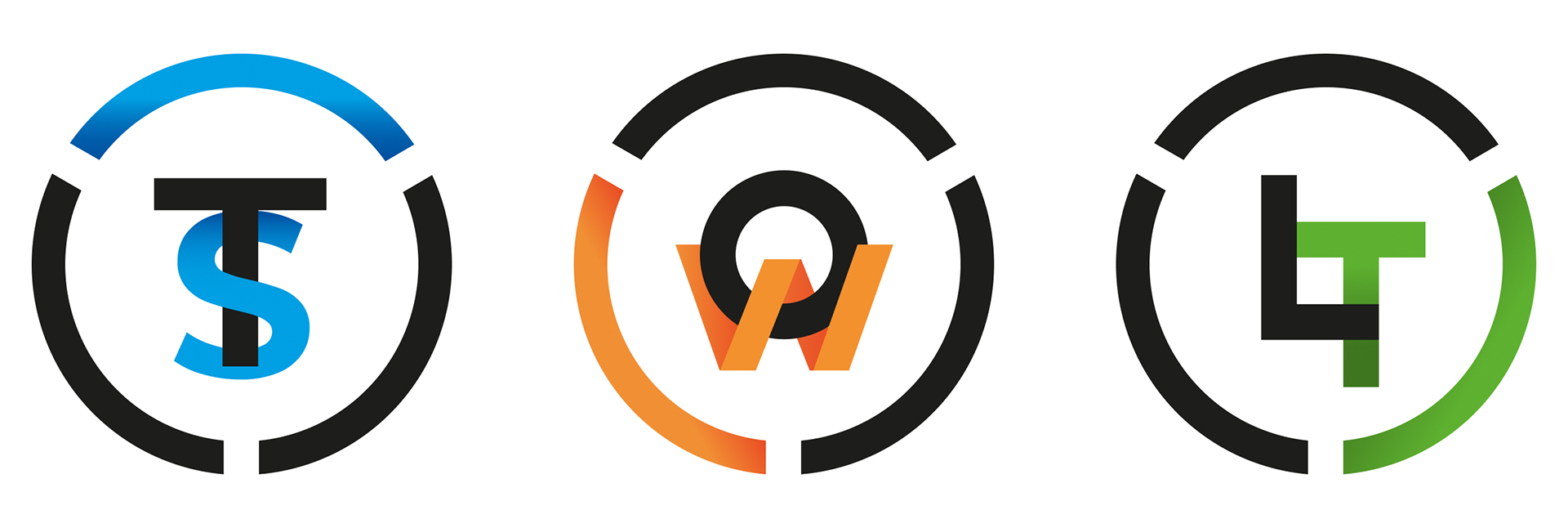 I simboli sono dei monogrammi dove le iniziali della dicitura si incrociano tra loro, circondati da tre segmenti circolari che assumono il colore di ciascun brand.
